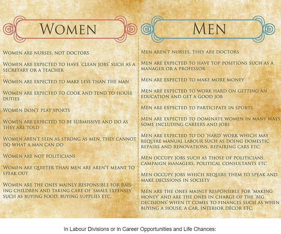 Let’s start by saying, stratification(which, by the way, means a system of layers, classes or categories)by sex is a feature that exists in most societies, with men generally being in a more dominant position than women in society. Our sex has huge influences on us in many ways, from how we think of ourselves and how others think of us to opportunities, work and life chances open to us.